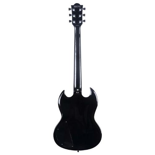 La DV-300 Black è la chitarra elettrica della serie "300" di casa Eko Guitars, ispirata alla celebre forma diavoletto. Presenta corpo in Pioppo, manico in Acero e tastiera 22 tasti in resina Eko WPC. Con finitura gloss, nut da 42mm, lunghezza di scala da 630mm, ponte in stile tune-O-matic e meccaniche Eko Die Cast, monta due pickup humbucker con controlli di volume e tono per ogni pickup e selettore toggle a 3 vie. Ideale per il chitarrista amante dello stile gibsoniano.