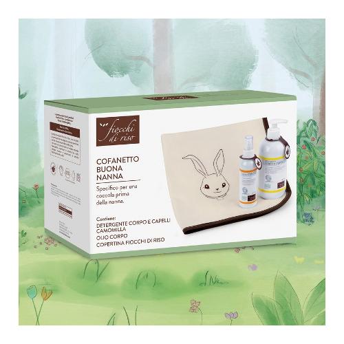 Cofanetto buona nanna è specifico per una coccola prima della nanna. Contiene tutto ciò che serve per una dolce coccola ogni sera, incluso una morbida copertina. Il cofanetto include: detergente corpo e capelli camomilla 400 ml è un detergente delicato con estratti di riso e malva biologica, indicato fin dalla nascita, che rispetta la cute e il cuoio capelluto sensibili. L'olio corpo 140 ml è una lozione idratante che nutre la pelle dei bambini, anche quella più sensibile e delicata, lasciandola morbida e levigata. Include inoltre una morbida copertina 100% cotone , perfetta per avvolgere il tuo piccolo in un caldo abbraccio, questa copertina è leggera e traspirante, ideale per ogni stagione.