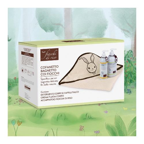 Cofanetto bagnetto coi fiocchi è specifico per un bagnetto delicato fin dalla nascita. Contiene tutto il necessario per il bagnetto insieme ad un morbido accappatoio. Il cofanetto include: la crema fluida corpo 240 ml è perfetta per idratare e nutrire la pelle secca dopo il bagnetto, garantendo un'idratazione continua e prolungata per 24 ore. Il detergente corpo e capelli talco 400 ml deterge e protegge la pelle sensibile dei bambini, rispettandone il ph fisiologico con una formula delicata che non lascia lacrimare gli occhi. Un morbido accappatoio per neonati è progettato per avvolgere il tuo piccolo in un caldo e coccoloso abbraccio dopo il bagnetto. Realizzato in tessuto super morbido e assorbente. Con un design adorabile e cappuccio, è l’ideale per mantenere il tuo neonato caldo e felice!