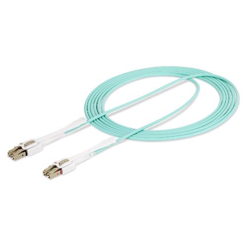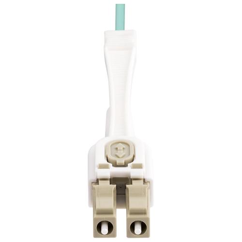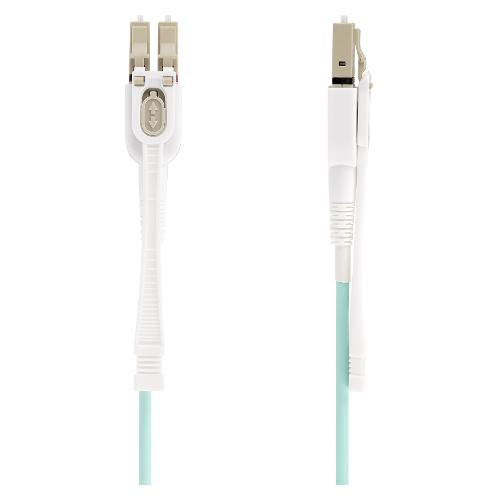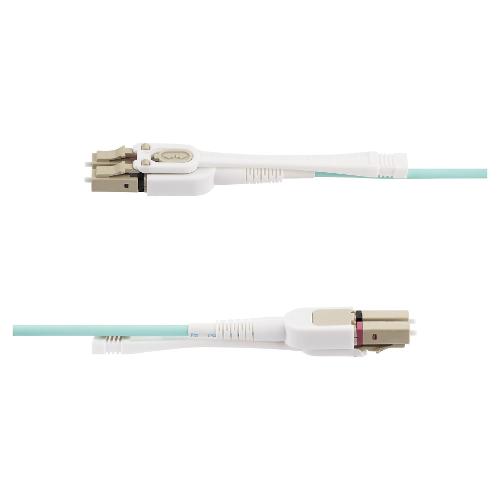 Il cavo in fibra ottica multimodale OM4 da LC/UPC a LC/UPC consente connessioni di rete a 40/100Gbps. Le linguette push-pull su ogni connettore assicurano una connessione e una rimozione rapida, facilitando un'installazione accurata in ambienti ad alta densità di connessioni. La fibra insensibile alle piegature e i rilievi antistrappo stampati supportano i percorsi dei cavi che richiedono micro/macro curve, mantenendo una bassa attenuazione. Gli alloggiamenti antistrappo retrattili consentono di cambiare la polarità sul posto, senza bisogno di utensili. I connettori LC-Duplex codificati a colori assicurano una configurazione della polarità senza errori.
