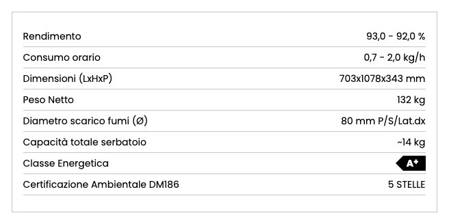 Il calore si fa spazio con Annabella Plus 5.0: con un minimo ingombro, questa stufa diffonde il calore fino a 6 metri di distanza, riscaldando più ambienti della casa. La sua ridotta profondità unita alla predisposizione per l’uscita fumi e per la canalizzazione posteriore, superiore o laterale destro, rende questo prodotto versatile in fase di installazione, soprattutto nelle situazioni di spazio ridotto.