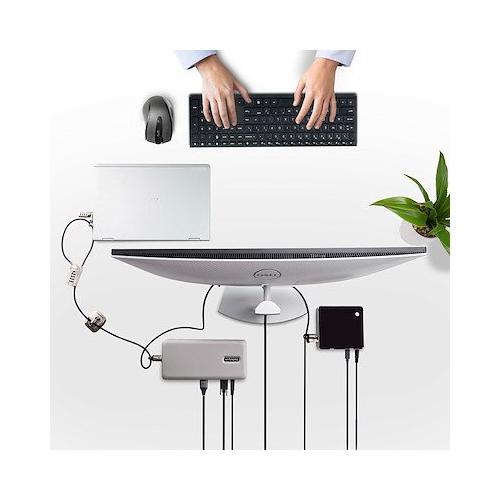 Il kit di sicurezza per computer e periferiche è una soluzione versatile per scoraggiare il furto di dispositivi che utilizzano il sistema K-slot. Protegge una postazione di lavoro e fino a tre periferiche con un unico punto di ancoraggio. Elimina la necessità di riorganizzare le scrivanie per posizionare i dispositivi in modo sicuro grazie al cavo in acciaio resistente al taglio lungo 3m.