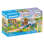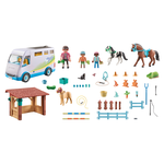 Partite per favolose avventure con i pony del waterfall ranch grazie al playset trasporto cavalli e stalla di playmobil. L'istruttrice di equitazione joana è ospite del ranch con il suo trasporto cavalli ed è attesa con impazienza dai bambini. Nel suo spazioso transporto c'è posto per due cavalli e, sopra il bagagliaio, ci sono due posti letto nel caso in cui le lezioni di equitazione si prolunghino. Nel bagagliaio sono riposti gli attrezzi da equitazione e gli accessori per i cavalli. E' disponibile un paddock per i pony. I bambini non vedono l'ora di partecipare alle lezioni di equitazione.