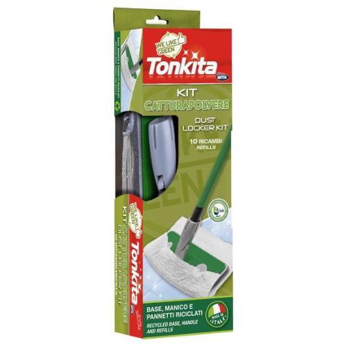 Il kit include 10 ricambi. Ogni panno è elettrostatico, realizzato con il 60% di fibre riciclate e presenta una texture 3d che cattura in maggior quantità polvere, capelli e peli di animali domestici. È adatto a tutti i tipi di pavimento.