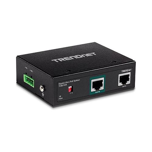 Suddivide un segnale Gigabit PoE in fonti di alimentazione e di dati separate. Alimenta un dispositivo non-PoE fino a 100 m di distanza dal PSE. Tensione di uscita regolabile per dispositivi da 12V, 16V, 24V o 48V