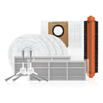 Il kit contiene 1 x Spazzola principale, 2 x Spazzola laterale, 2 x Filtro ad alta efficienza, 4 x Panno per mocio e 4 x Sacchetto per la polvere.