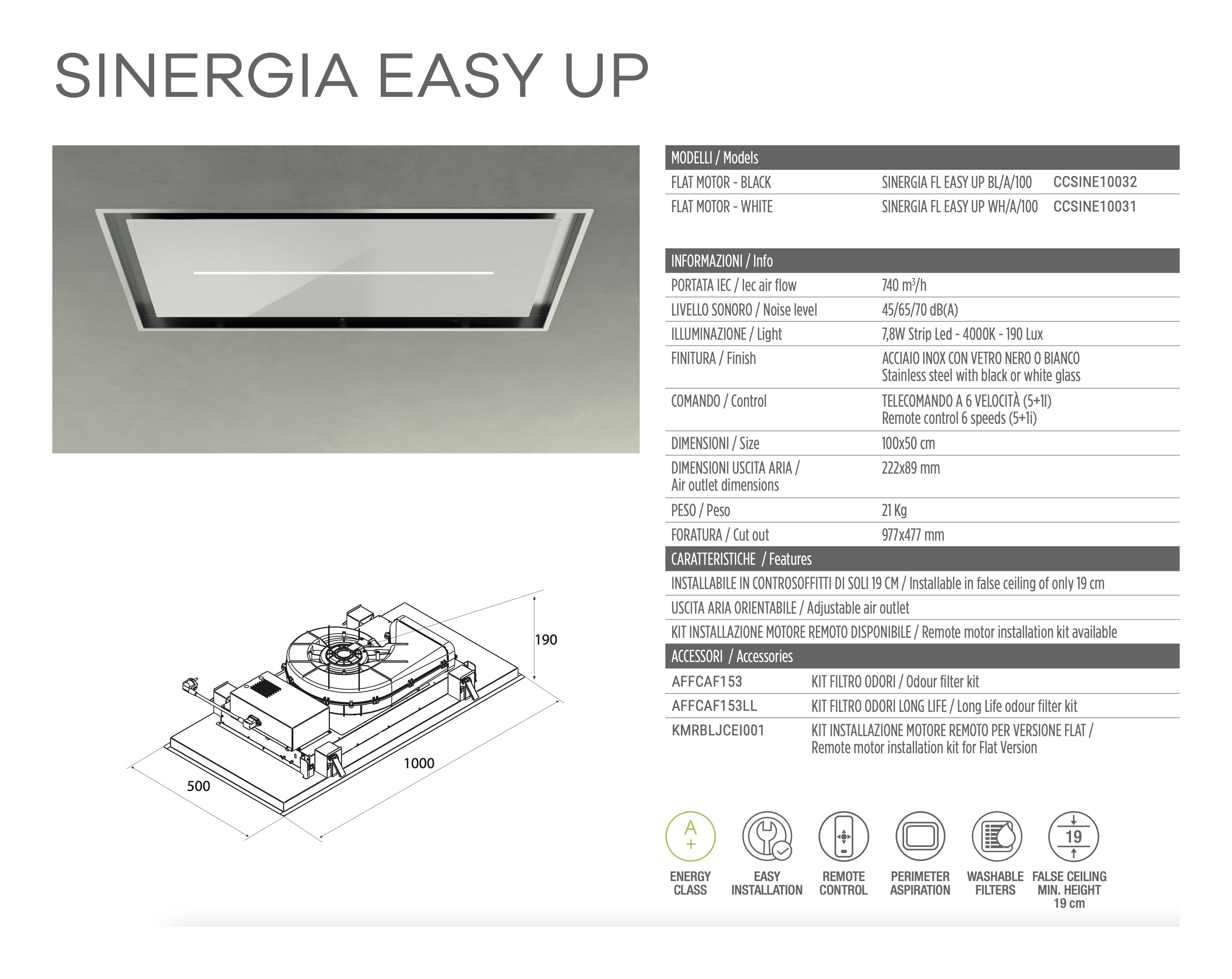 Cappa incasso (100cm) SINERGIA FL EASY UP Bianco CCSINE10031