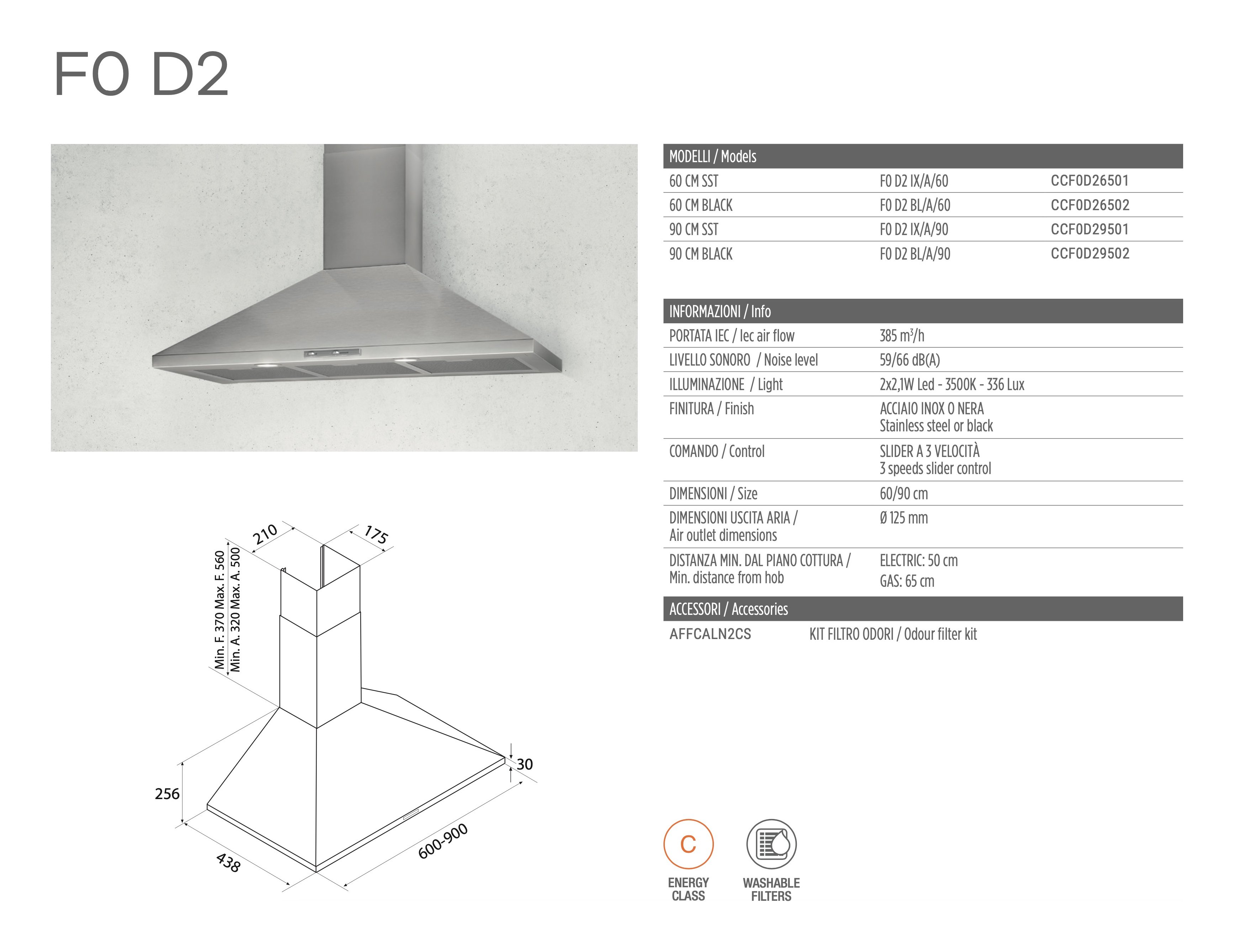 Cappa parete (60x43,8x75,6cm) F0 D2 Nero CCF0D26502