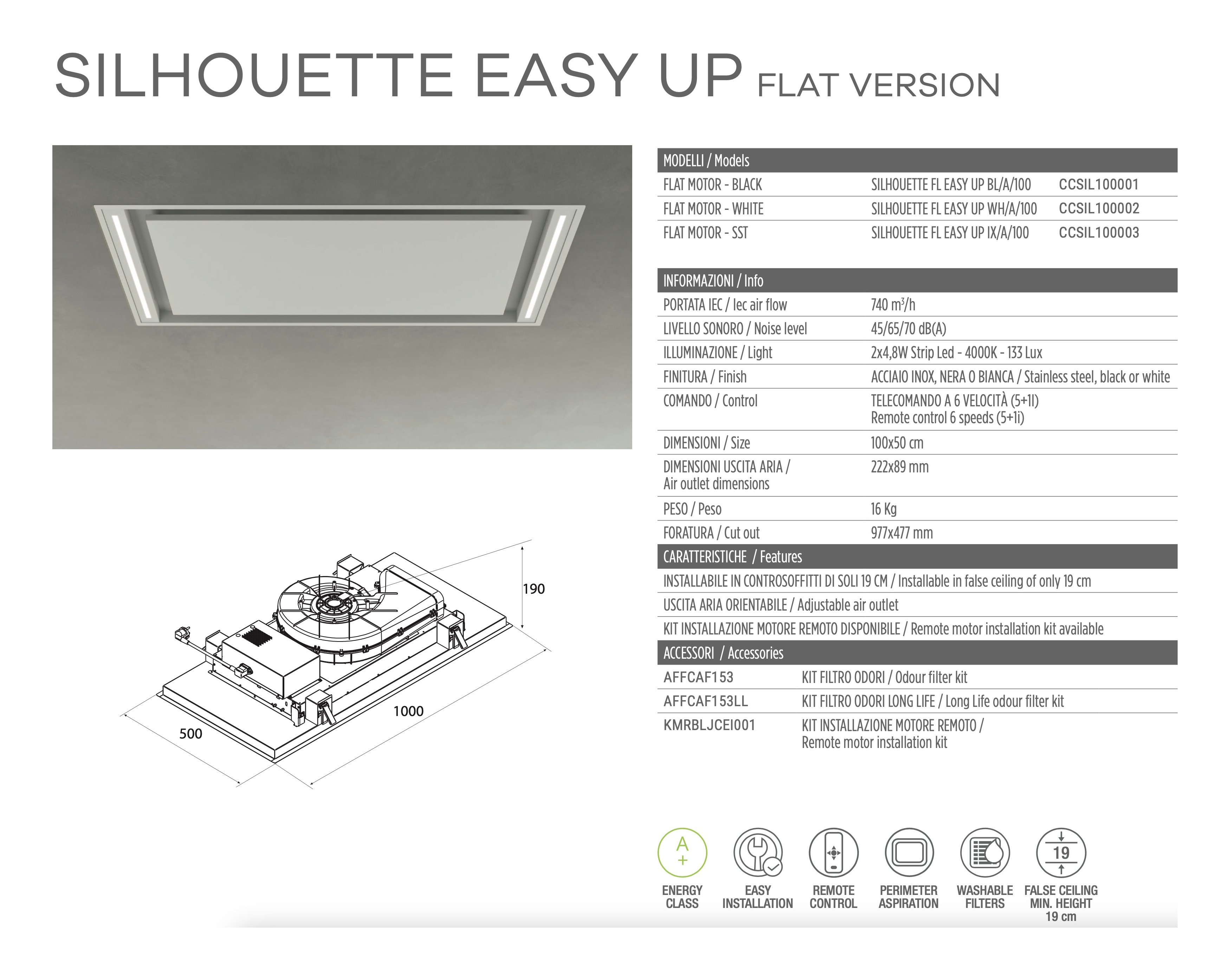 Cappa incasso (100cm) SILHOUETTE EASY UP FLAT Inox CCSIL100003
