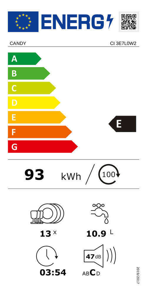 Lavastoviglie incasso 13 coperti RAPIDO CI 3E7L0W2 classe E (L60cm)