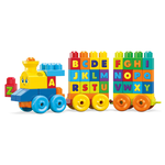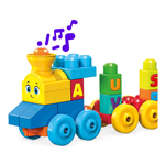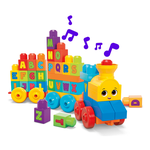 Tutti in carrozza con un trenino dell'alfabeto che emette suoni realistici e musica! Il vostro bambino prenderà il binario della velocità per imparare l'alfabeto ogni volta che costruisce un trenino musicale, decorato con le lettere dalla a alla z! Collega le tre basi con ruote che girano e sovrapponi i blocchi delle lettere sopra i vagoni per imparare l'alfabeto o per costruire intere parole. Poi, basta premere la ciminiera per scoprire suoni realistici del treno e una canzoncina che accentua la magia musicale dell'avventura dell'alfabeto!