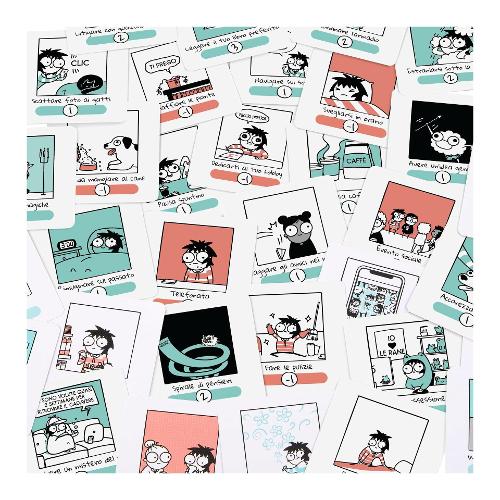 Questo gioco di carte esclusivo sfoggia le illustrazioni personalizzate di sarah andersen, la premiata scrittrice e artista del webcomic sarah's scribbles. Il mazzo e il gioco hanno tutto l'umorismo, lo stile artistico e il fascino che hanno reso famosi i fumetti sarah's scribbles. I giocatori pianificano la loro giornata con le carte impegno, come tempo libero, carte pesca, altro lavoro e cambia giocatore. Ottenete punti pescando distrazioni, come sogni a occhi aperti, pausa merenda o infastidisci il gatto. Perdete punti quando pescate responsabilità, come innaffiare le piante, fare le pulizie, o svegliarsi in orario.