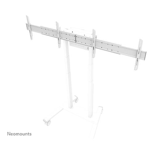 Neomounts ADM-875WH2 è un adattatore per doppio schermo opzionale per il supporto da pavimento mobile FL55-875WH1 e il supporto da parete WL55-875WH1. L'adattatore consente l'installazione di 2 schermi da 42" fino a 65" con un peso massimo di 40 kg per schermo. Le staffe regolabili in altezza assicurano un perfetto allineamento degli schermi. È possibile bloccare queste staffe, utilizzando un lucchetto (non incluso). È anche possibile installare un display XXL fino a VESA 2000x600 mm e max 80 kg.