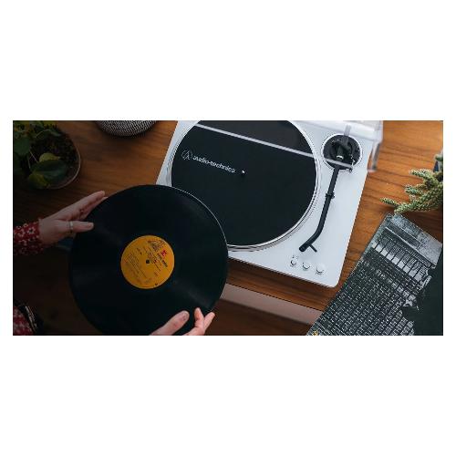 Il giradischi automatico wireless AT-LP70XBT è il giradischi perfetto per chi inizia il suo viaggio da audiofilo. Combinando l'esperienza di un audio analogico caldo con la praticità della tecnologia Bluetooth, puoi ascoltare i tuoi vinili tramite altoparlanti, cuffie o altri dispositivi abilitati Bluetooth, inclusi quelli che supportano il codec audio adattivo Qualcomm aptX di alta qualità.