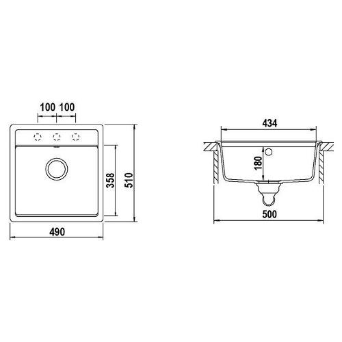Lavello 1 vasca (49x51cm) NEMO Nero assoluto Ruvido opaco NEMN100S13