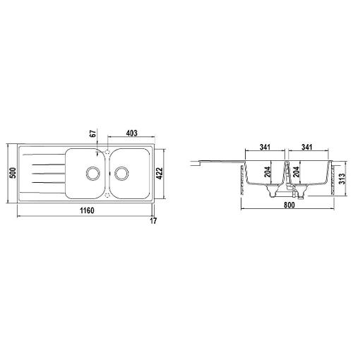 Lavello 2 vasche (116x50cm) LITHOS Antracite Ruvido opaco LITD200A51N