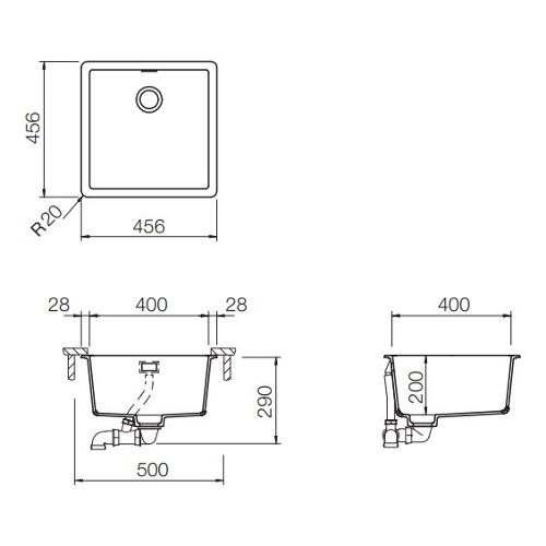 Lavello 1 vasca (45,6x45,6cm) BROOKLYN Bianco assoluto Ruvido opaco BYKN100A01