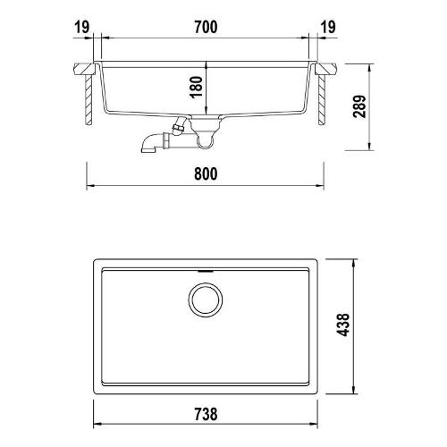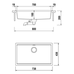 Lavello 1 vasca (73,8x43,8cm) LAHTI Asphalt Ruvido opaco LATN100XLU43