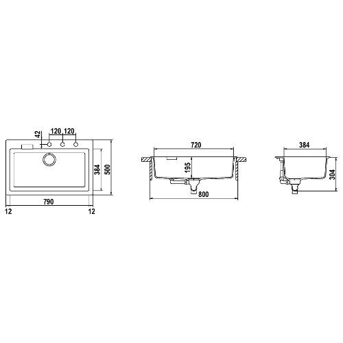 Lavello 1 vasca (79x50cm) PRIMUS Antracite Ruvido opaco PRIN100AP51