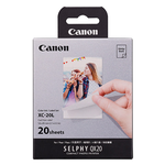 Carta da stampa adesiva formato tessera, 53x86mm, e inchiostro specifici per la stampante Canon Selphy QX20. La confezione offre inchiostro e carta per un massimo d 20 stampe.