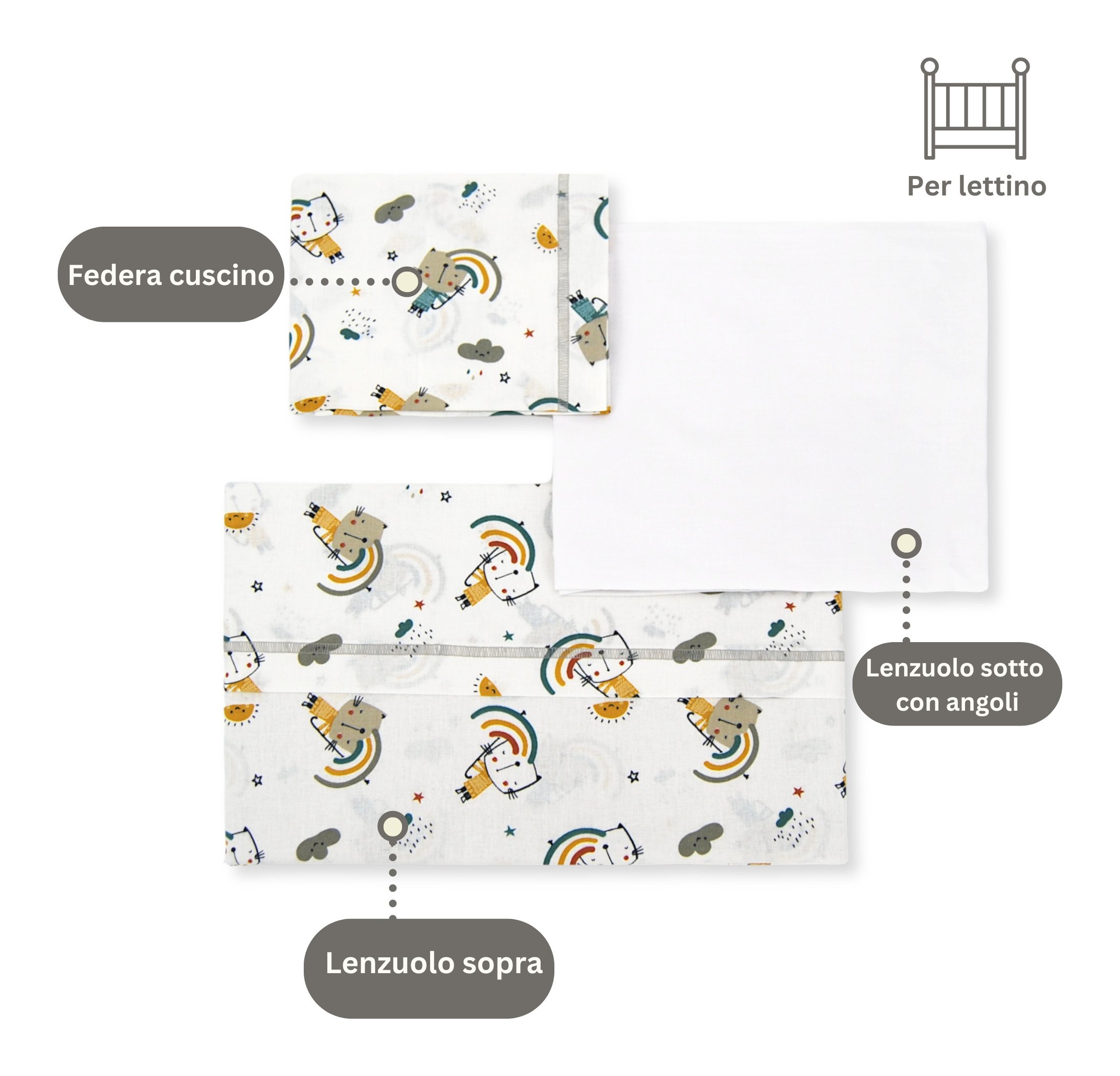 Set lenzuola lettino completo 3 pz Fantasia beige LLFB