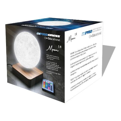 DiProgress MOON è un globo lunare illuminato a levitazione magnetica che sfida la gravità. Un nuovo concetto di lampada che aggiunge un tocco futuristico all’ambiente circostante combinando eleganza e innovazione. Sorprendi con la magia della levitazione! Questo dispositivo incorpora una sofisticata tecnologia brevettata che bilancia due forze della natura: la forza di gravità che attrae i corpi verso il basso e la forza elettromagnetica che respinge un magnete verso l’alto