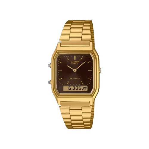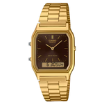Un look vintage nei colori classici: cassa e cinturino con finitura in oro metallizzato completati da un quadrante Sunray marrone. Cinturino regolabile da 140 a 205 mm