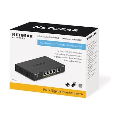 Switch unmanaged Gigabit a 5 porte con 4 porte PoE+ e budget di alimentazione da 83 W per l'alimentazione di AP Wireless, telecamere IP, telefoni IP e altro ancora
