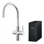 Rubinetto multifunzione con starter kit mythos water hub all in one con bocca fissa. Il sistema cucina 6in1 è una soluzione innovativa che fornisce l'accesso all'acqua corrente fredda, calda, filtrata, gassata, refrigerata e bollente. La caldaia, l'unità di raffreddamento, la bombola di co2 e il filtro con testata si trovano in un unico alloggiamento compatto, consentendo una facile installazione sotto il lavello. Il controllo elettronico con segnalazione led e un'applicazione mobile facilitano il funzionamento e il monitoraggio dei consumi. L'avanzato filtro pro m connect rimuove calcare, ruggine, cloro e contaminanti per un'acqua della massima qualità, mentre la tecnologia rfid assicura che il dispositivo franke ti invii una notifica quando il filtro deve essere sostituito. La cartuccia di co2 è facile da installare e sostituire, garantendo un accesso costante all'acqua gassata.