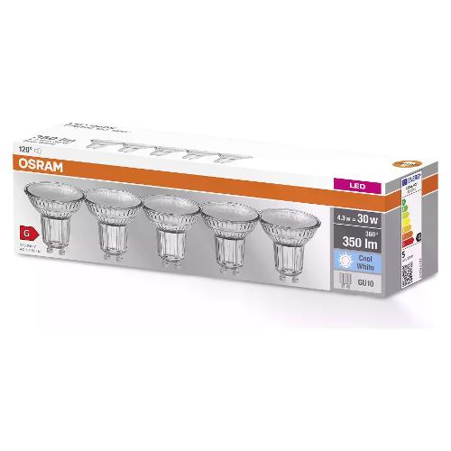 Set lampadine led (5pz) faretto GU10 (4,3W) , luce fredda BASE PAR 16