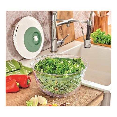 Ecco la centrifuga per insalata e ciotola 2 in 1 snips spin & serve in un vivace colore verde. Questo comodo strumento è dotato di una manopola ergonomica e di un coperchio preforato con un foro di scarico, che facilita la centrifuga e l'asciugatura delle tue insalate. L'ampio contenitore funge anche da ciotola da portata, rendendolo perfetto per mescolare le tue insalate con il condimento. Di' addio alle insalate inzuppate e dai il benvenuto a verdure fresche e croccanti con questa versatile e pratica combinazione di centrifuga per insalata e ciotola. È un must per ogni cucina!