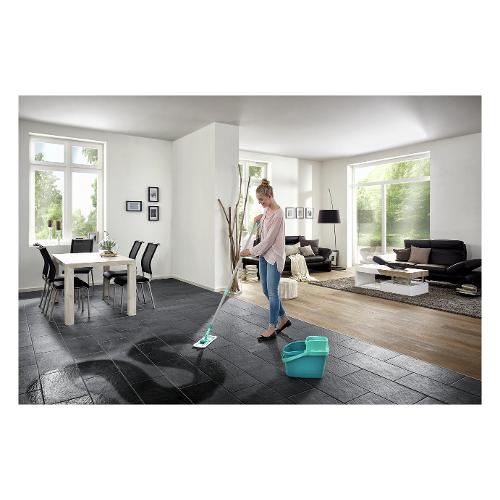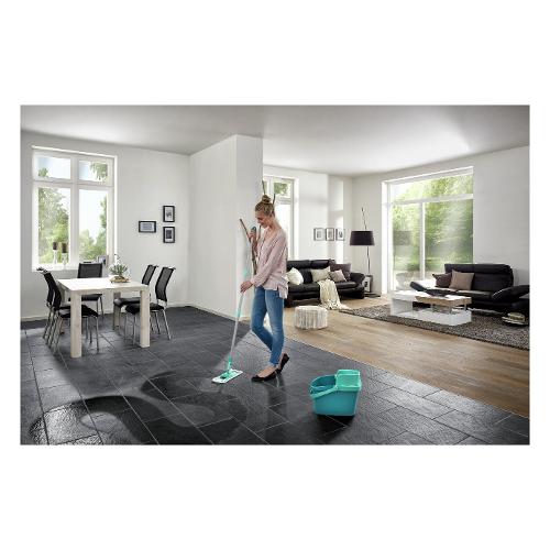 Pulire a fondo senza piegarsi e senza immergere le mani nell'acqua sporca. Il set combi clean di leifheit offre tutto il necessario per una pulizia dei pavimenti senza difficoltà: un panno per pavimenti, un secchio compatto da 12 litri ed un'applicazione combi press per una pratica strizzatura del panno per pavimenti. Con il suo rivestimento a 2 fibre assicura una pulizia in profondità. Le file di finissime setole leggermente sporgenti raccolgono lo sporco da tutte le scabrosità e rimuovono anche le incrostazioni di sporco più ostinato senza sforzi. Dato che il rivestimento abbraccia i lati del tergisuperfici, si puliscono anche gli angoli e bordi. Una soluzione altrettanto pratica: snodo girevole flessibile e manico completamente pieghevole. In questo modo è possibile una pulizia efficace nei percorsi tortuosi e per i punti difficilmente accessibili sotto a cassettiere, armadi e letti il panno si appiattisce completamente. Per eseguire la strizzatura in modo pratico, sbloccare il panno per pavimenti con uno scatto del pedale. Disporre il rivestimento in combi press e strizzare il rivestimento spingendo all'indietro il panno per pavimenti. Ed il gioco è fatto. Il rivestimento si strizza senza piegarsi e le mani restano pulite. Il panno è largo 34 cm.