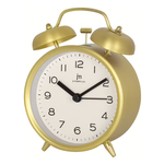 Sveglia al quarzo analogica in metallo anodizzato con suoneria su campana metallica, luce e snooze (ripetizione dopo 5 minuti). Movimento continuo silenzioso.
