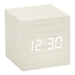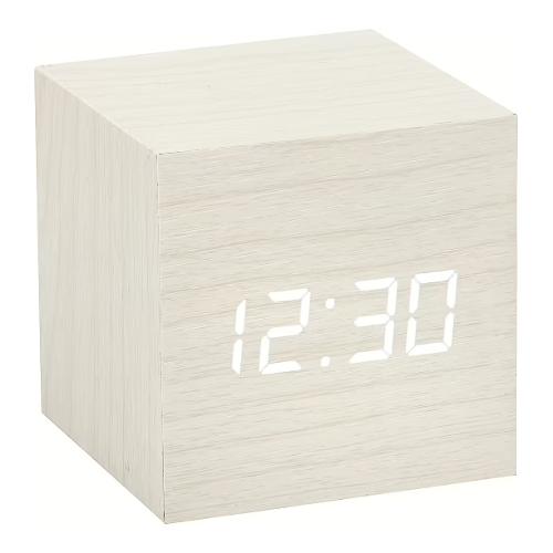 Sveglia digitale multifunzione con cassa in legno. Possibilità di visualizzare temperatura interna e calendario. Tre differenti allarmi regolabili. Diminuzione automatica dell’intensità del display oppure possibilità di regolazione manuale (4 livelli). Modalità “sound control” per il risparmio energetico. Cavo USB di ricarica in dotazione (alimentazione consigliata DC 5V/500 MA). Batteria tampone CR2032 (inclusa)