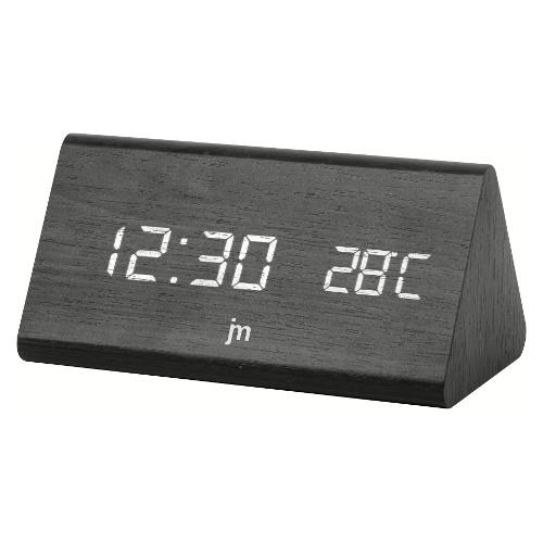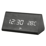 Sveglia digitale multifunzione con cassa in legno. Possibilità di visualizzare temperatura interna e calendario. Luce notturna di cortesia posta sul retro, regolabile. Porta USB per ricarica dispositivo mobile, posta sul retro.