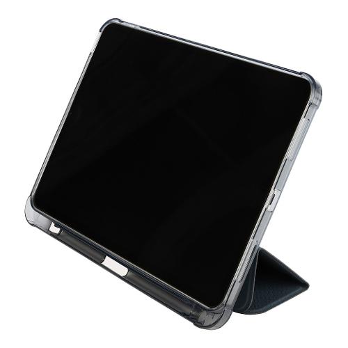 Custodia ultra-protettiva iPad Pro 11" M4 2024, realizzata parzialmente in materiale ottenuto dalla plastica riciclata, con copertina anteriore in materiale effetto satinato, trasformabile in stand up. La scocca posteriore anti-shock è in policarbonato trasparente a doppia iniezione, completata da un bordo perimetrale in TPU per un inserimento più agevole dell'iPad. La cover Satin è dotata di un vano interno per Tucano Pencil e Apple Pencil.
