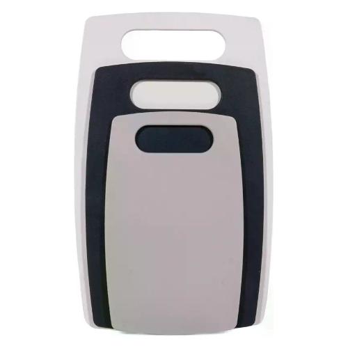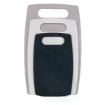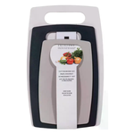 Un set di taglieri multicolori (3 articoli) sicuro e resistente all'usura. Progettato per la lavorazione di pesce, carne, verdure, frutta, ecc. Grazie al suo design laconico, si adatterà a qualsiasi interno della cucina, non assorbe liquidi e succhi dai prodotti e non lascia odori, preserva il piano di lavoro durante il processo di cottura;