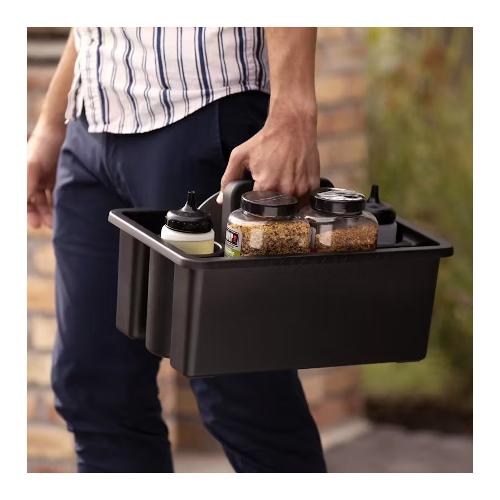 Trasporta facilmente gli oggetti dalla cucina al barbecue o alla piastra con il contenitore con coperchio a vassoio Weber Works. Basta inserire il contenitore con coperchio a vassoio nel ripiano laterale Weber Works per creare una comoda stazione di preparazione degli alimenti e avere a portata di mano salse, condimenti e utensili per cucinare.