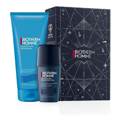 Cofanetto aquafitness gel doccia: all'interno del kit troviamo il gel doccia della linea aquafitness da 200 ml e in regalo il deodorante day control 48h di protezione da 75 ml. Aquafitnes gel douche 200 ml: un morbido gel schiuma profumato che deterge la pelle e i capelli con delicatezza e senza seccarli. Produce una schiuma ricca e si risciacqua facilmente. Risultato: la pelle è morbida e rivitalizzata. Day control 48 h roll on 75ml: azione antitraspirante non stop: 48 ore di protezione, per una performance che risponde ai bisogni di tutti i giorni. intensità media: protezione antitraspirante fino a 2 giorni. Biotherm homme ottimizza la formulazione dei suoi deodoranti con la nuova smart protect technology™: per prestazioni fino a 48 ore, un deodorante a lunga durata che rinfresca e protegge la pelle dal sudore, mantenendola asciutta in tutte le condizioni.