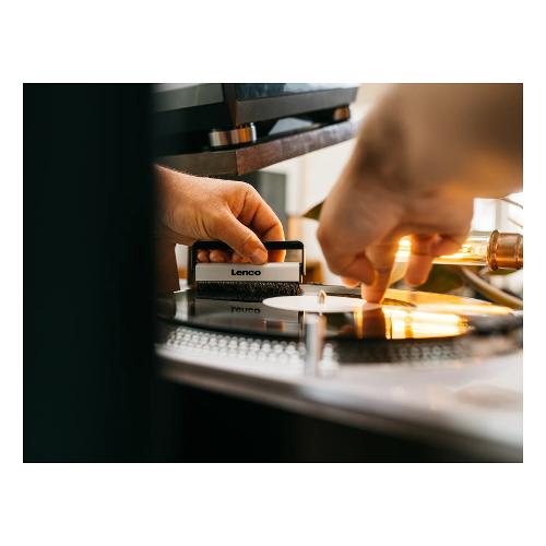 Il Lenco TTA-3in1 è composto da una spazzola in fibra di carbonio per la pulizia dei dischi, una scorta di liquido detergente da 10 ml e un panno antistatico per pulire a fondo i tuoi dischi.