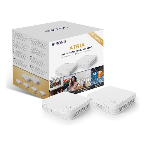 Utilizzando una soluzione Easy Mesh all'avanguardia, il Wi-Fi Mesh Home Kit 1200 di STRONG combina la tecnologia Mesh con il potente standard Wi-Fi 802.11ac MU-MIMO per una velocità e una copertura ottimali a casa. Questa confezione da 2 ATRIA Mesh Extender 1200 sostituisce la rete Wi-Fi attuale senza modificare il modem o il router.