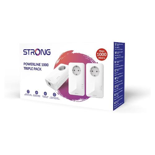 Il pacchetto triplo Powerline 1000, che comprende 3 adattatori Powerline 1000, crea in modo estremamente semplice una rete domestica ad alta velocità utilizzando il cablaggio elettrico esistente della casa con velocità fino a 1000 Mbit/s. Non sono necessari nuovi cavi! Collegate a Internet computer, dispositivi elettronici di consumo e dispositivi compatibili con la rete in qualsiasi stanza e piano della vostra casa, semplicemente utilizzando una presa di corrente.