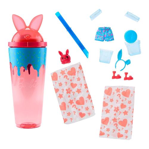 Le bambole della serie barbie pop reveal shakes stimolano i sensi quando vengono aperte. All'interno, otto sorprese ti aspettano in una tazza ispirata al frullato! Il coperchio con le orecchie degli animali può essere svitato e la pellicola può essere perforata con la cannuccia per un divertimento morbido. La confezione può essere aperta rimuovendo la pellicola sulla tazza. Questo rivela una graziosa bambola alla moda kitten barbie al profumo di shakes con articolazioni mobili e lunghi capelli blu-verdi! I 2 cubetti di ghiaccio possono anche essere aperti per rivelare una sorpresa al loro interno: una gonna colorata e un simpatico paio di scarpe! I cubetti di ghiaccio possono essere utilizzati per la conservazione o per ripetuti divertimenti a sorpresa. L'acqua ghiacciata cambia il viso della bambola, mentre l'acqua calda annulla tutto, ancora e ancora!
