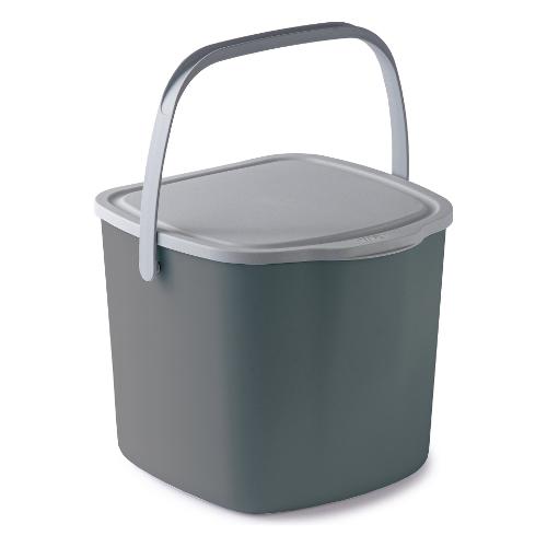 Contenitore con coperchio per gettare i rifiuti che si producono mentre si cucina. Perfetto per essere tenuto sul piano della cucina, o appeso al cassetto o al mobile della cucina, grazie al pratico gancio posteriore. Gli angoli arrotondati e il coperchio completamente removibile la rendono particolarmente comoda da pulire, anche in lavastoviglie.