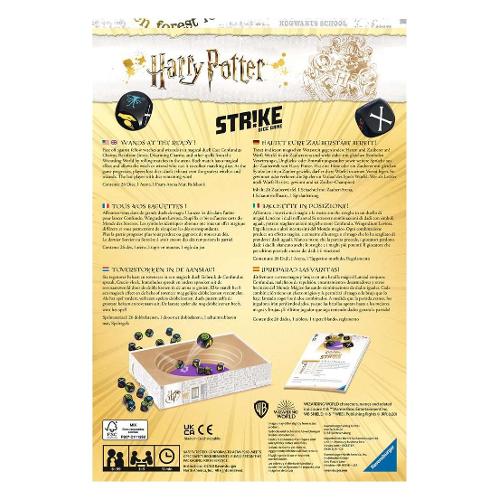 Un gioco di dadi semplice e divertente per 2-5 giocatori. Lancia i tuoi dadi nell’arena, colpisci gli altri dadi per fargli cambiare faccia e raccogli i gruppi con simboli uguali. Strike Dice game Harry Potter è consigliato a partire da 8 anni, la durata media di una partita è di 15 minuti ed è un ottimo passatempo per serate di gioco con gli amici o in famiglia. Strike Dice game Harry Potter è anche un ottimo regalo per gli appassionati della saga Harry Potter. Si gioca a turno e si prosegue in senso orario. Il giocatore al proprio turno lancia un suo dado nell'arena e raccoglie quelli che mostrano lo stesso risultato sulla faccia superiore. Ogni giocatore decide in autonomia se lanciare altri dadi o fermarsi passando il turno. Quando un giocatore conclude il proprio turno e non ha più alcun dado a sua disposizione, viene eliminato dal gioco. Il gioco si conclude quando resta un solo giocatore con dei dadi nella scorta. Questo giocatore è il vincitore! Il gioco contiene: 26 Dadi, 1 Arena, 1 Tappetino morbido, Regolamento
