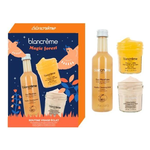 Una routine viso radiosa per una pelle luminosa e un colorito uniforme. L'acqua micellare (99,1% di origine naturale) con estratti di limone, pompelmo e arancia rimuove delicatamente il trucco. Il doppio sorbetto esfoliante (96,3% di origine naturale) è un doppio scrub enzimatico e meccanico con acidi della frutta e scorze di limone e arancia. Elimina le impurità e leviga la pelle. La maschera in gel (96% di origine naturale) con estratto di limone biologico, macerato oleoso di carota biologico, vitamina c e alfa arbutina fornisce un vero e proprio boost di luminosità, lasciando la pelle più luminosa, morbida e con un colorito uniforme.