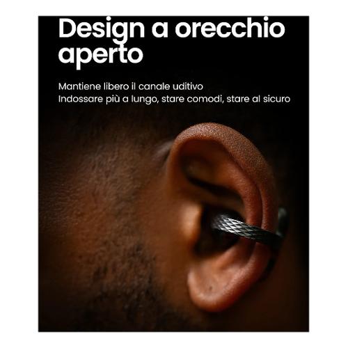 Dove stile, comfort e sicurezza sono perfettamente in sintonia. Il design open-ear mantiene il condotto uditivo libero , il che è più salutare per le orecchie e garantisce che gli auricolari rimangano comodi anche dopo un uso prolungato.