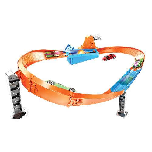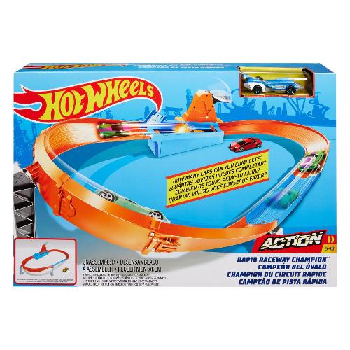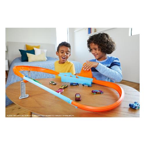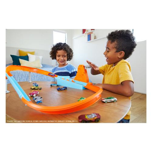 Affronta gli amici con la gamma di playset campione di velocità, per gare di performance d'eccellenza, sgommate e acrobazie. I bambini possono testare le loro abilità in 3 sfide che includono un circuito per le acrobazie, una drag race e una coraggiosa corsa in salita. Il tracciato campione di velocità™ è una drag race classica con un cancelletto di partenza straordinario. Tira la leva verso l'alto e rilasciala per far partire il conto alla rovescia. Quando i cancelli si aprono, inizia la corsa per far sventolare la bandiera del vincitore! Tutto ciò di cui i bambini hanno bisogno per le corse è incluso in questa confezione: pista arancione, corsa fianco a fianco e punti di lancio, più un veicolo hot wheels® in scala 1:64. Ogni playset si collega ad altri playset hot wheels® (in vendita separatamente) per costruire un mondo di piste sempre più epico.