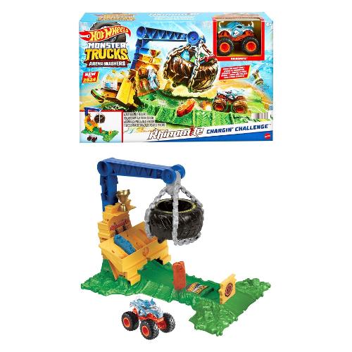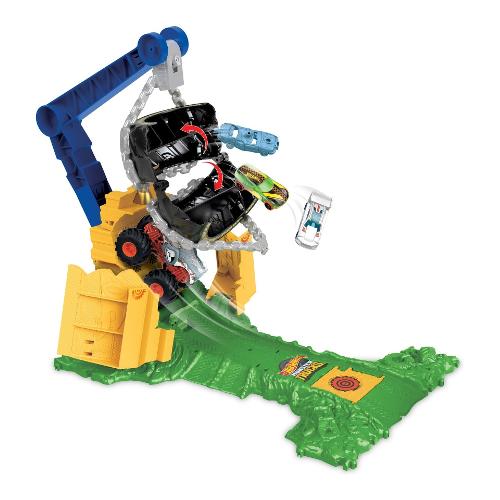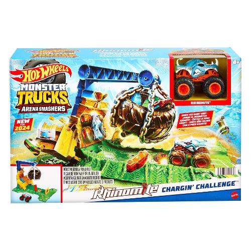 Per gli appassionati di monster trucks e hot wheels ci sono gli emozionanti set di gioco della serie monster trucks arena smashers. Con questi set devi superare ostacoli pericolosi: non sono esclusi incidenti spettacolari! In questo set il monster truck rhinomite deve superare una serie di pericoli. Ma fai attenzione, altrimenti uno pneumatico sospeso colpirà il camion. Il set fornisce un feedback sensoriale in modo che gli urti possano essere percepiti nei palmi delle mani. Il set include un monster truck in scala 1:64 e due auto schiacciate.