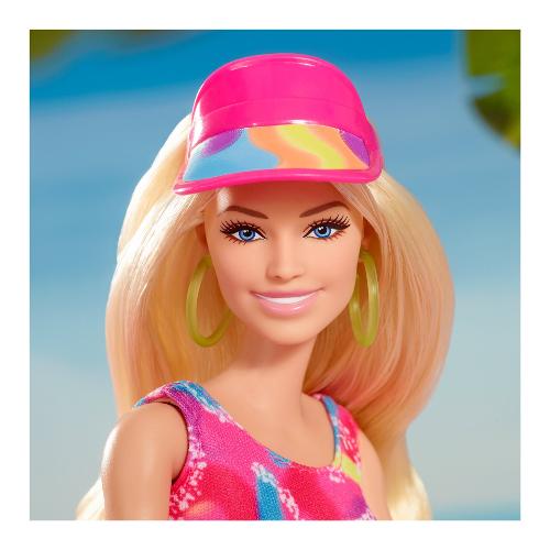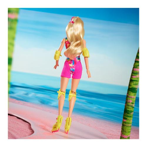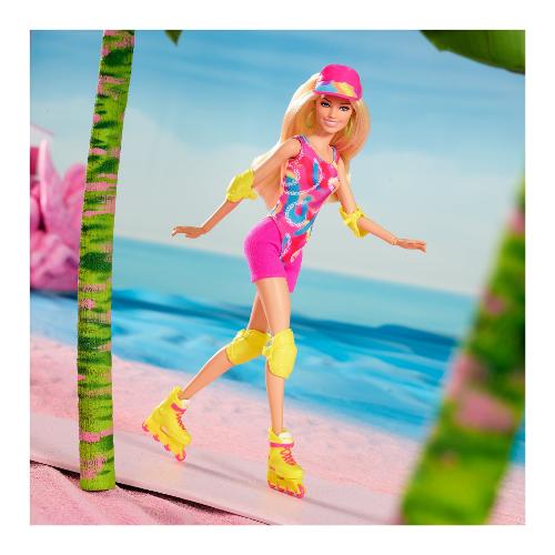 Porta a casa un frammento del film barbie™ con questa bambola barbie® da collezione! Sfoggia un outfit sportivo fluorescente che riprende l'iconico look da pattinaggio indossato da margot robbie nel ruolo di barbie all'interno del film. Con il suo body acceso d'ispirazione retrò, la bambola barbie® sembra abbia pattinato fin qui direttamente dal film! Indossando il body sopra a pantaloncini da ciclista rosa elettrico, il suo look non passa di certo inosservato. Una visiera rosa acceso e un paio di orecchini a cerchio verde fluo mettono in risalto i suoi caratteristici capelli biondi, raccolti in una coda di cavallo per un look di grande impatto. Grazie al suo set da pattinaggio verde fluo, composto da gomitiere, ginocchiere e pattini impala in linea, è davvero una forza della natura!Questa Bambola dal corpo snodato include una confezione da collezione del film barbie™
